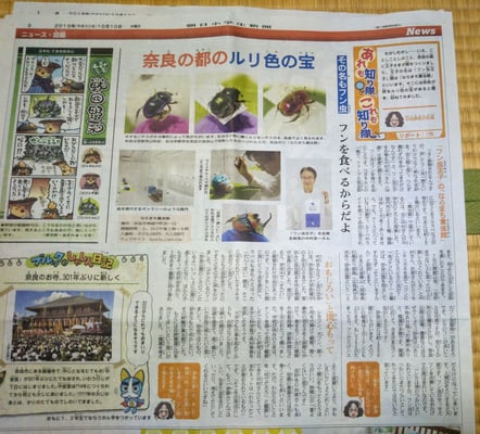 P3(「あれも知り隊これも知り隊」欄)「奈良の都のルリ色の宝」その名も糞虫 フンを食べるからだよ