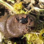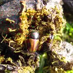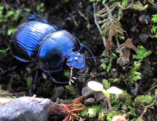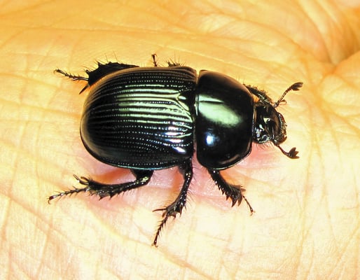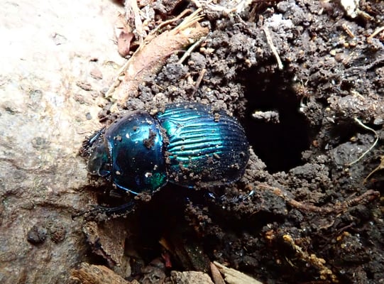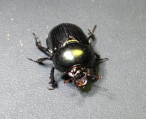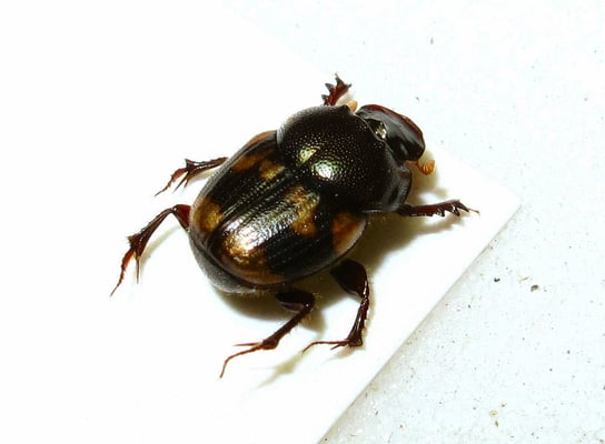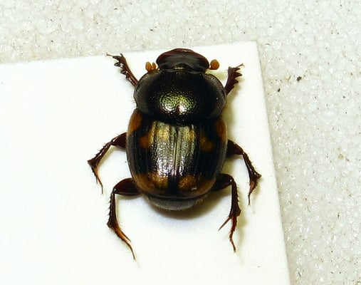 奈良公園ではオオセンチコガネと並ぶ最も大型の糞虫です。金属光沢を帯びるものの深紫や茶色など落ち着いた色彩のため、糞虫観察会で発見されても大喜びされることはありません。40年前はもっと普通に見ることができましたが、現在は奈良公園ではオオセンチコガネが圧倒的多数派となっており、少し心配しています。がんばれ!センチコガネ。