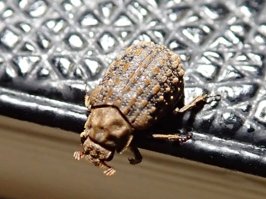 私がまだ中学生の頃、自分達で立ち上げた昆虫同好会で仕掛けたスジ肉トラップで1匹を採集して以来、40年ぶりに奈良公園の獣糞で再会できた思い出のコブスジコガネ。先日まで友人の手で大切に保管されていた当時の個体も、現在はならまち糞虫館で展示されています。コブスジコガネの中では最も一般的で特に関東以南の森林に多く生息しているらしいのですが、土塊と似ているので、いても案外見逃しているかもしれません。目的は解りませんが、お腹をヒクつかせて鳴きます(というか、音を出します)。