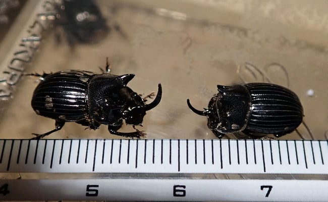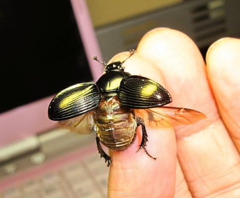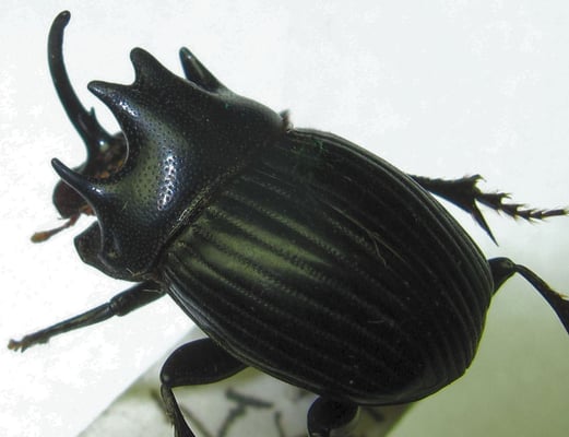 奈良公園には牛糞がないためでしょうか、日本最大の糞虫であるダイコクコガネが生息していません。でも、繊細で5本の角がカッコいいゴホンダイコクコガネがいます。夜行性で昼間は土に潜っていることが多いので、オオセンチコガネのように簡単には見つかりません。